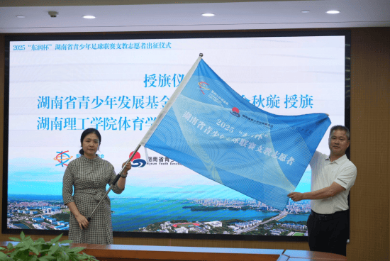出征仪式上,湖南省青少年发展基金会秘书长余秋璇授“支教志愿者”旗帜,湖南理工学院体育学院负责人接旗。湖南理工学院党委委员、副校长徐振祥勉励足球支教志愿者,要在实践中锤炼品格,学会担当,甘于奉献,用行动证明新时代的理工青年既能驰骋赛场,也能在服务祖国需要的地方绽放光彩。