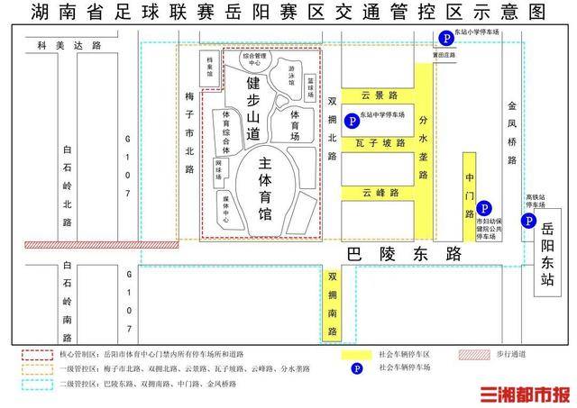 三湘都市报记者从岳阳公安交警获悉,为确保湖南省足球联赛岳阳赛区赛事期间道路交通安全、有序、畅通, 交警部门决定对市中心城区相关路段实行交通管制。管制时间为9月14日、9月19日、10月3日、10月19日、11月2日、11月16日,比赛当日17时至22时30分。