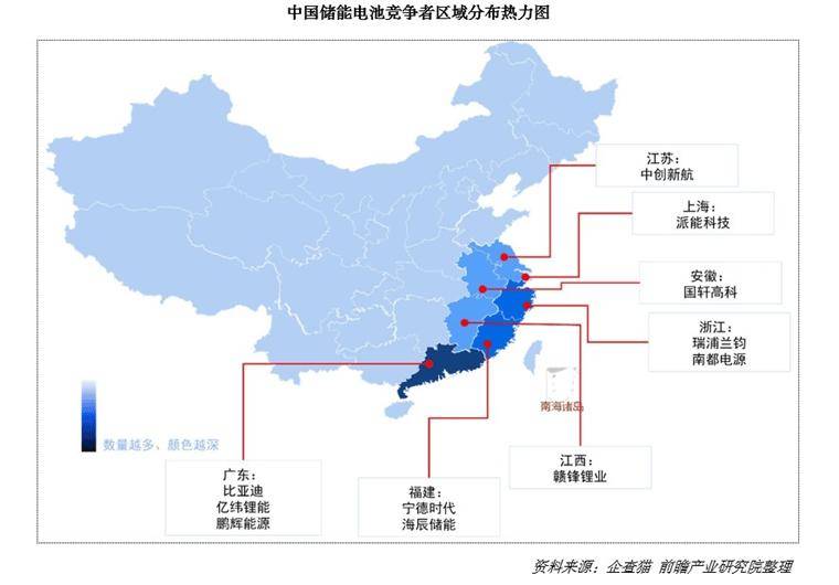 从区域分布来看,我国储能电池行业代表性竞争者主要分布于沿海地区,其中,广东省有比亚迪、亿纬锂能、鹏辉能源等。