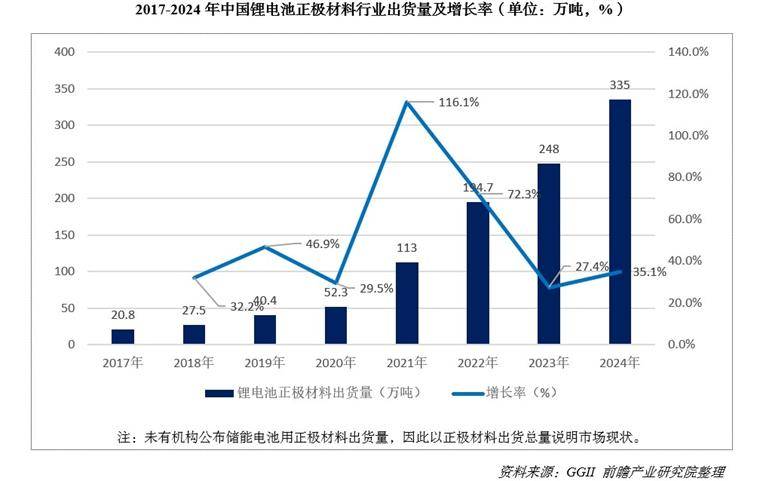 从行业发展来看,2017-2024年,中国锂电池正极材料行业出货量逐年增长,2024年,中国锂电池正极材料出货量为335万吨,同比增长35.1%。在新能源汽车与储能产业双重驱动下,未来几年正负极材料市场规模仍将保持高速增长,永州重点布局这一环节,既能依托本地锂矿资源形成产业协同,又能精准把握市场增长红利。