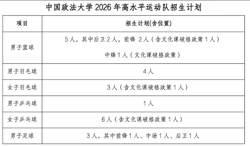 我校根据高水平运动队建设规划及招生需求,在教育部核准的运动项目范围内,确定2026年招生项目和招生计划,各项目招生计划见下表。